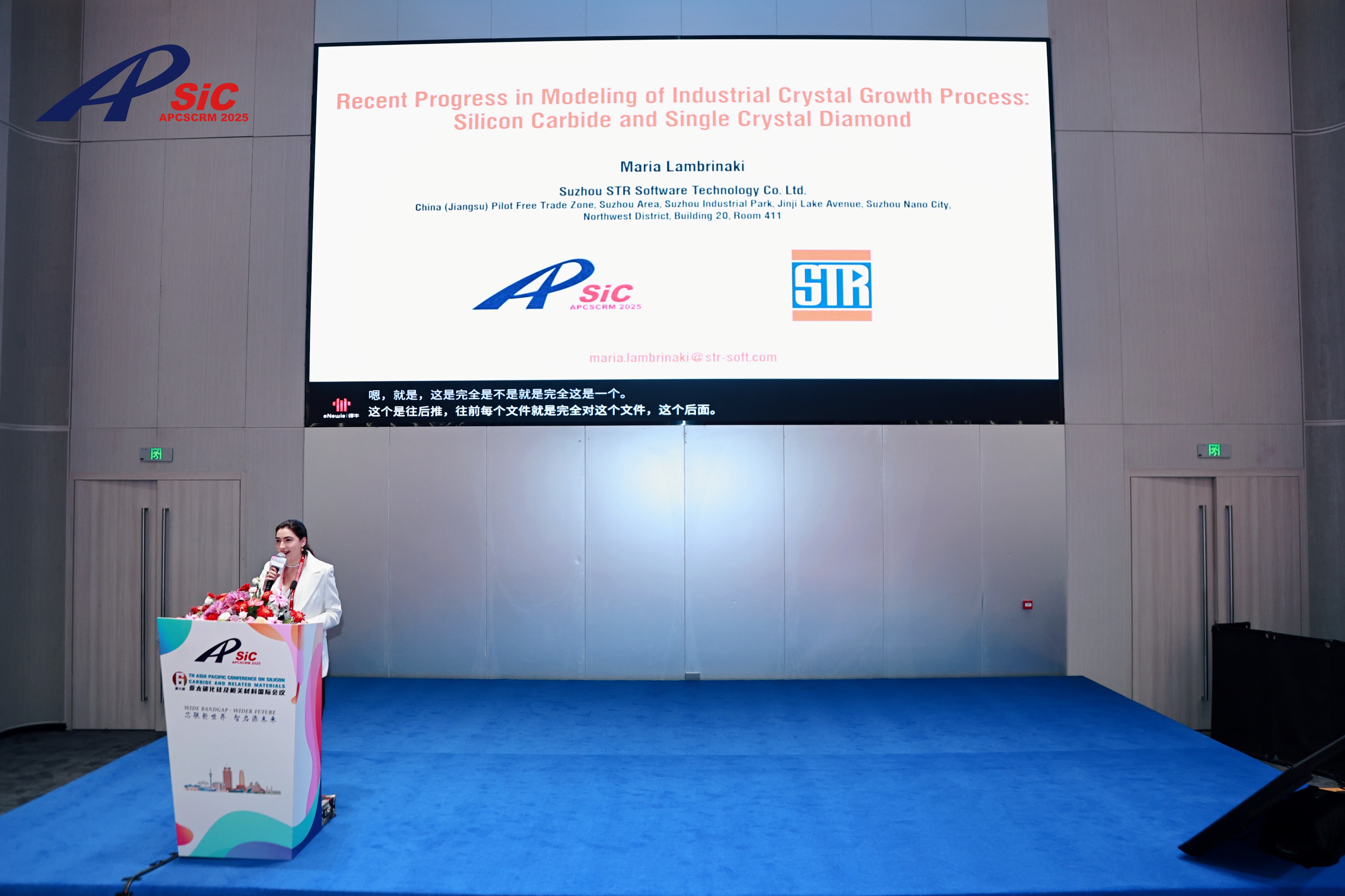 我司总经理Maria进行了题为《Recent Progress in Modeling of Industrial Crystal Growth Process: Silicon Carbide and Single Crystal Diamond》的报告。