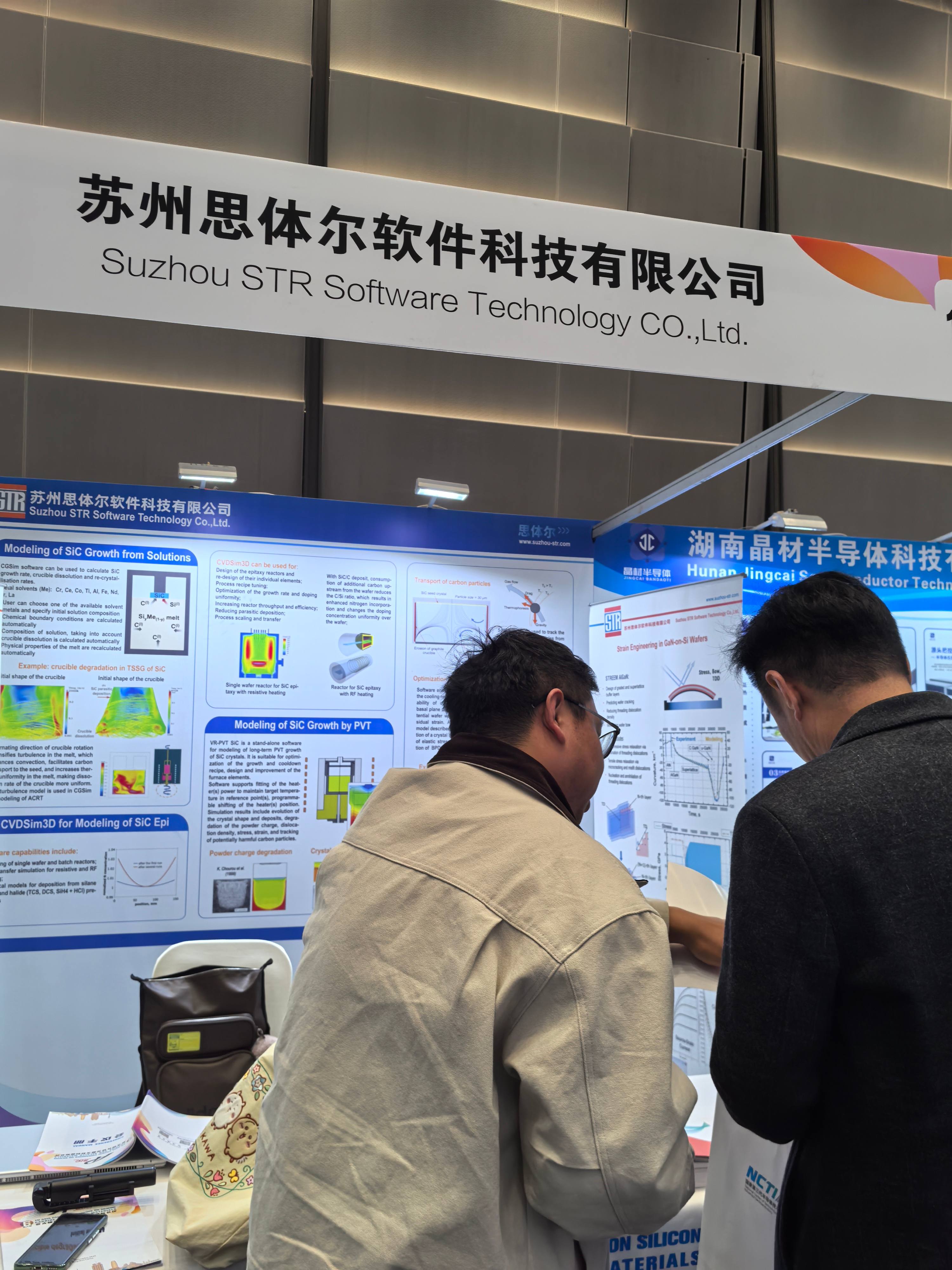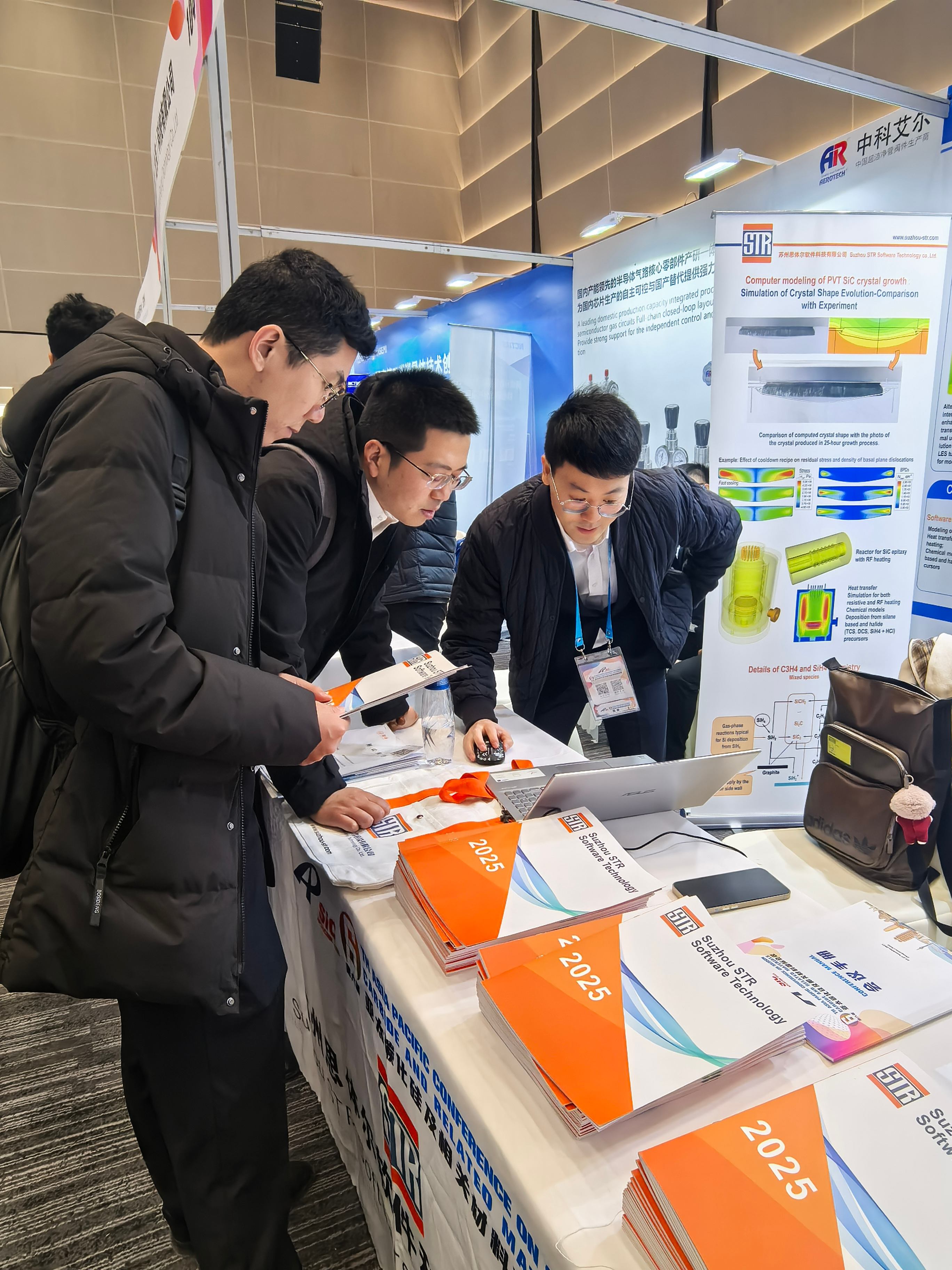 展会期间参会者们纷纷来到展位驻足交流,我司技术人员凭借专业素养与娴熟技巧,通过电脑生动展示我司软件在碳化硅晶体生长、外延及金刚石MPCVD等领域的模拟仿真情况,将复杂的技术细节以直观的方式呈现出来。