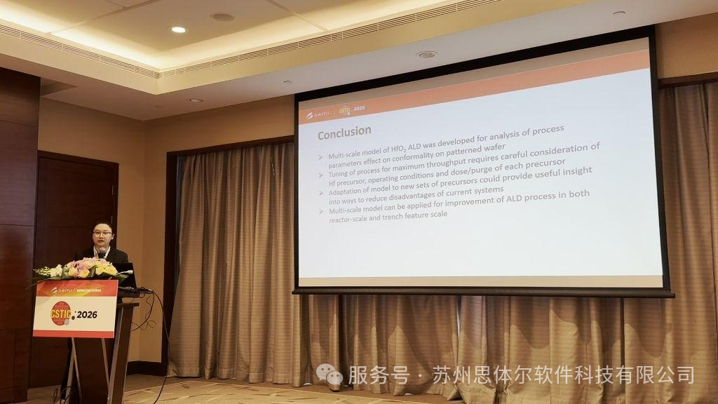 我司肖琳琳技术支持工程师参与了此次CSTIC 2026会议,她的演讲题目:《Multi-scale model of HfO2 ALD for improvement of the on-wafer uniformity and the step coverage 》。